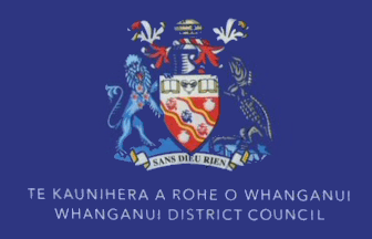 The Wanganui District Council, based in the City of Wanganui in the southwest of New Zealand's North Island, seems to have a flag. There's a pretty reasonably photo of it on the Council website.