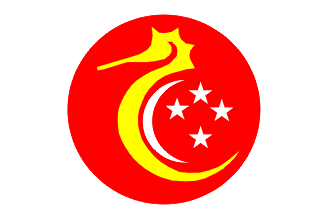 Tasman - Asia Shipping Co., Ltd., Hobart - white flag, red disk, charged with yellow seahorse, a crescent pointed flywards, containing 4 5-pointed stars, placed 1,2,1, all white.