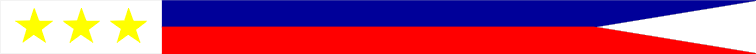 Rectangular swallow-tailed pennant, blue over red, with white field at hoist