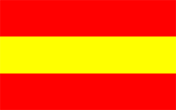 Flag: a rectangle of three equal horizontal bands: red-yellow-red."