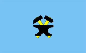 Flagdescription: blue, in center a black anvil over two crossed hammers