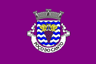 Shield barry wavy of 11 of Argent and Azure, over all a grapevine Purpure leafed Or. Mural crown Argent with three visible towers (village rank) and white scroll with inscription in black capitals "POÇO DO CANTO".
