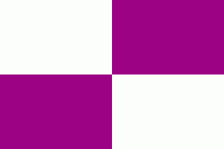 It is a quite typical portuguese municipal flag, with the coat of arms centred on a field quarterly (meaning town rank) of white and purple.