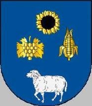 Shield Azure, a grapevine and a corn cob, both Or and set in fess, in chief a sunflower Or seeded Sable, in base a ram passant Argent. Mural crown Argent with three visible towers (village rank) and white scroll with inscription in black capitals "VILA COVA - PENAFIEL".