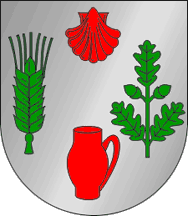 The blazon says pitcher flanked by ear and twig plus scallop in chief, but the image shows them set 1:2:1 in the same aapproximate size.