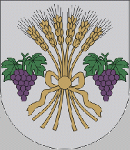 The arms are Argent between two bunches of grapes fruited Purpure and leafed Vert six ears of wheat Or tied of the same. Mural crown argent with four visible towers (town rank) and white scroll reading in black upper case letters"VILA DE SÁTÃO".