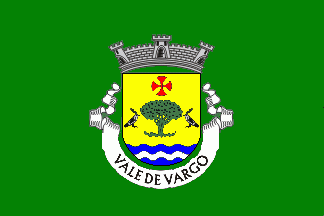 Shield Or, base wavy of Azure and Argent, in centre an olive tree eradicated Vert fruited Sable between two sparrows statant Sable garnished Argent each with a wheat ear Vert in his beak, in central chief a red rounded cross patty Gules. Mural crown with three visible towers (village rank) and white scroll reading in black capitals: "VALE DE VARGO".