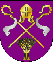 Shield Purpure, two croziers Or with a scarf Argent each crossed per saltire topped by a mitre Or, in base a grain garb Or. Mural crown with four visible towers (town rank) and white scroll reading in black capitals: "VILA NOVA DE S. BENTO"