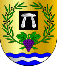 The olive branches stand for oliviculture, the grape bunch stands for viticulure, the waves refer to the Tedo River, which constitutes the commune´s western boundary, and the dolmen stands, surprisingly, not for any specific local pre-historic megalithic monument but rather generically for the commune´s history, "of which many traces remain, namely from the Roman period".