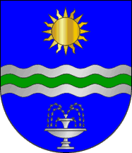 The clocktower in the arms refers to a local landmark, as to be seen here, and the green and blue water stand for the commune's seashore (green) and River Alcabrichel (blue).