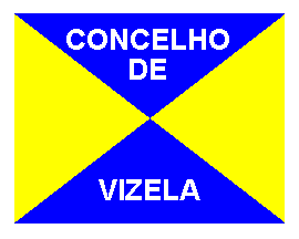 [At the municipality refoundation celebrations] there was also another flag in display: a diagonally quartered flag of yellow and blue (yellow in the hoist and fly and blue in the top and bottom), with a thin white bordering and the words "CONCELHO | DE | VIZELA" in white in the blue triangles ("concelho de" in the one at the top and "Vizela" in the one at the bottom).