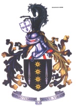 This group has a very heraldic coat of arms, whose shield is black with four 8-pointed hollowed mullets disposed vertically, sided by two silver swords. The crest includes the shield of the BMI.