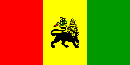 I found however what may be typical Rastafarian and/or reggae musician [flag] usage of the Ethiopian tricolor with golden lion (patched on clothes): http://www.burningspear.net and the Ethiopian tricolor with silver lion (flag, stage background): http://www.burningspear.net.