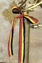 flag. The cravate is affixed to a lectern and uses the colours of the Romanian