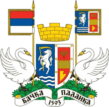 The flag of Bačka Palanka (photo, photo) is white with the municipal coat of arms in the middle. A square banner of the municipal arms has also been reported.