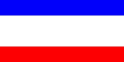 - The state flag of the Republic of Mariy-El is made of a rectangular field with three horizontal stripes: the upper stripe is azure blue and its width is 1/4 of the flag width, the middle stripe is white and its width is 1/2 of the flag width, the lower stripe is red and its width is 1/4 of the flag width. The length of the flag is related to its width by a ratio of 2:1. In the left half of the white stripe, near to the flag hoist, is represented a fragment of a Mari national ornament. It is inscribed in a square, whose side equals 1/4 of the flag width. Below is the writing MARIY EL. The emblem and the inscription are reddish brown. The distance between the geometrical center of the ornament and the hoist is 1/2 of the flag width. The distance between the geometrical center of the ornament and the lower edge of the blue stripe is 1/5 of the flag width. The thickness of the lines of the ornament is 1/50 of the flag width. The writing MARIY EL is inscribed in a rectangle, whose sides equal 1/4 and 1/10 of the flag width. The rectangle is placed below the ornament 1/20 of the flag width from the upper edge of the red stripe. The height of the small capital letters is 3/4 the height of the normal capital letters. The lines constituting the letters have a thickness of 1/10 of the height of the small capitals. [See construction sheet bellow — ed.]
