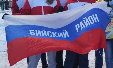 image by Valentin Poposki, 19 January 2020Biyskiy Rayon is one of the rayons of Altayskiy Kray. There are no official symbols, as far as I know. However, there is an unofficial flag in use, which as in case of the City of Biysk is the Russian flag with name of the rayon on it.