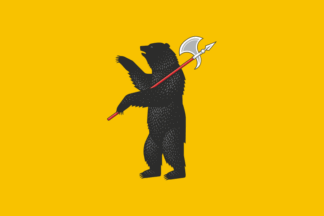 On July 15th, 1998 Governor A. I. Lisitsyn signed Decision No458 On start a contest on best drawings of arms, standard and flag of the Yaroslavl Region. The lesser arms — yellow shield, black bear with a long silver axe with red handle. Shield crowned with ancient Prince’s crown (like on 1730 coat of arms). The greater arms — lesser arms with supporters: