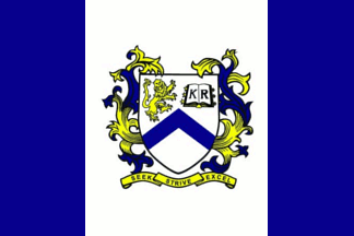 A white field charged with the hall emblem in full colour at the centre and