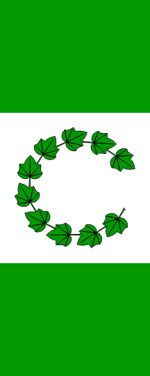 central stripe forming a square charged with the C-shaped ivy leaves'