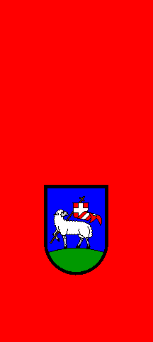 The flag is vertical, blue with two vertical red stripes on each side, 1/5 of the flag's width. The symbolism of the colors is the same as on the coat of arms (see below). The flag's length is not prescribed (but the relative proportions of the vertical stripes should be kept). The coat of arms is placed in the upper part of the flag, and can be surmounted with the name of the village.