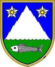 The coat of arms of Kobarid is "In a blue field a white Alpine mountain peak
