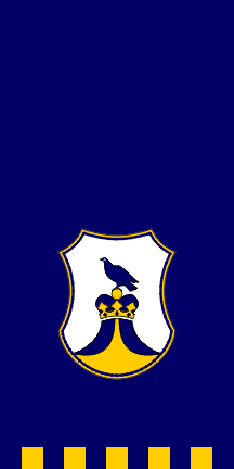 A variant of the flag with the name of the municipality placed beaneath the coat of arms is also used.