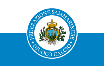 San Marino Football Federation use national colors and logo in the middle,