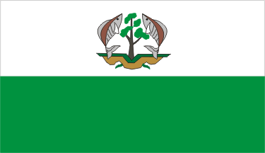 and green with a blue triangle at hoist containing a white five pointed star.