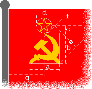 The USSR flag had in front a hammer and sickle and the back was a plain red flag with nothing on it. I’ll admit that I had a bit of trouble finding a written reference again when I needed it, but from Webster’s Concise Encyclopedia of Flags & Coats of Arms [mch85a]: