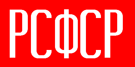 Red with in the upper hoist yellow Cyrillic initials (RSFSR) in serif, placed in the form of a cross.