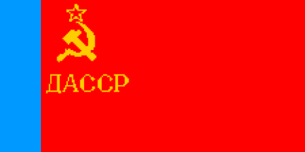 It is not clear when was adopted the first flag of the Soviet republic of Daghestan, after 20 January 1921. Other soviet republics within Russia adopted red flags 1919-1920. In the Dagestan flag that, of course, was red, were golden capital letters in canton "DASSR" (cirillic) that in my opinion can be a pattern dated c. 1923 (before -1921-1923- I believe that the pattern must be "DSSR" but I dont know any flag with this letters).