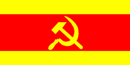 red burgee with in the center a yellow hammer and sickle, the sickle heavily