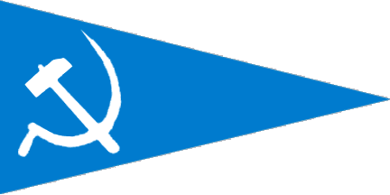 Blue pennant with white hammer and sickle.