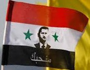 Bashar al-Assad, and on the bottom black line in white Arabic lettering is