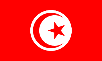 The flag was adopted in 1831 by Hassine I, 8th bey (sovereign) of the Husseinite Dynasty. [DK Pocket Book says 1835. Smith (1975) says the flag was adopted by Bey Hussein II.][Le drapeau est] "rouge et comporte en son milieu un cercle blanc où figure une étoile rouge à cinq branches entourée d'un croissant rouge".
