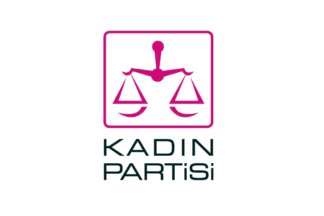 The flag of the KP is white with the party symbol (photo). There is a swallow-tailed banner as well (photo): this is magenta-coloured, shows the symbol (in white) in top, and in base one half of the balance, also in white.