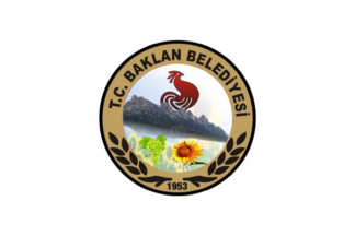 The flag of Baklan is white with the municipality's emblem in the middle. "Belediyesi" means "Municipality".