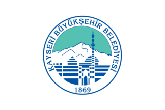 The flag of Kayseri (photo, photo, photo, photo) was white with the municipality's former emblem. On some flags (photo, photo) the emblem is placed on a diagonally divided white-blue-green square.