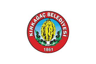 The flag of Kırkağaç (photo) is white with the municipality's emblem in the middle. "KIRKAǦAÇ BELEDİYESİ" means "Kırkağaç Municipality".