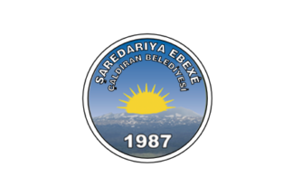 The flag of Çaldıran (photo) is white with the municipality's emblem. "Türkiye Cumhuriyeti" means "Republic of Turkey"; "Belediyesi" means "Municipality".