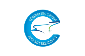 The flag of Edremit, used horizontally (photo) or vertically (photo), is white with the municipality's emblem. "T.C." stands for "Türkiye Cumhuriyeti", "Republic of Turkey"; "Belediyesi" means "Municipality".
