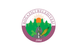 The flag of Boğaziçi is white with the municipality's emblem. "Belediyesi" means "Municipality".