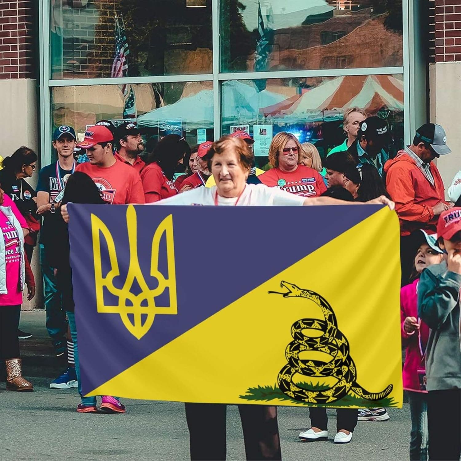 rattlesnake centered on the Ukrainian National Flag. A blue shield
