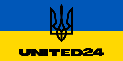 There have been several unofficial flags made to raise awareness of United24, mostly consisting of their logo placed on their national flag. The two that I could document so far was one used during London Fashion Week in February 2023 by Ukrainian designers