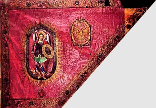 Also http://www.vexillographia.ru/ukraine/cosaccos.htm writes that Hetman used a red flag with Archangel Michael already in 1655.