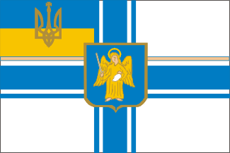 This flag with some changes appears at http://www.uarmy.com.ua/ALMANAH/ALMANAH03/article12/art12.html as Flag of Commander-in-Chief of the Navy. Flag of Commander-in-Chief of the Navy with Kiev CoA in the centre is doubtful. I know only about flag with two crossed anchors in 3rd quarter. But may be variant with Kiev arms existed too...