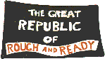The flag of the town of Rough and Ready in California is black, with THE GREAT REPUBLIC OF written in white and ROUGH AND READY written in red on a white background on it. The history of the republic can be found at this site: www.roughandreadychamber.com/secession.html .