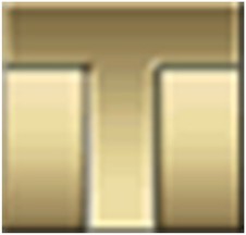 T-shaped single letter golden logo resembling a gold bar, ca. 2000s)