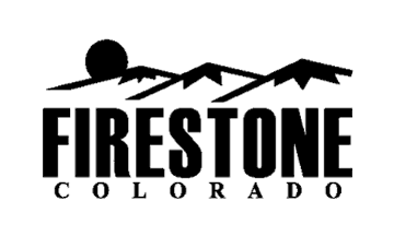 After installing flagpoles at the new city hall (and related departments), Firestone adopted a flag in 2019. It consists of a white field with the city's logo centered on it in black. The logo depicts the sun setting over mountain peaks, which watch over the town.